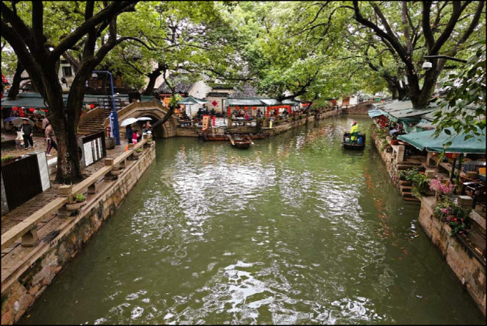 Suzhou es también llamada “La Venecia de Oriente” con bellos y limpios canales, citada ya por Marco Polo en el s. XIII; es un importante centro comercial y cultural, y una localidad muy turística y tradicional. Destacan el Museo del Abanico, el Gran Canal 5, que es el más importante de sus numerosos canales, sus casas del siglo XV y XVI y sus jardines: