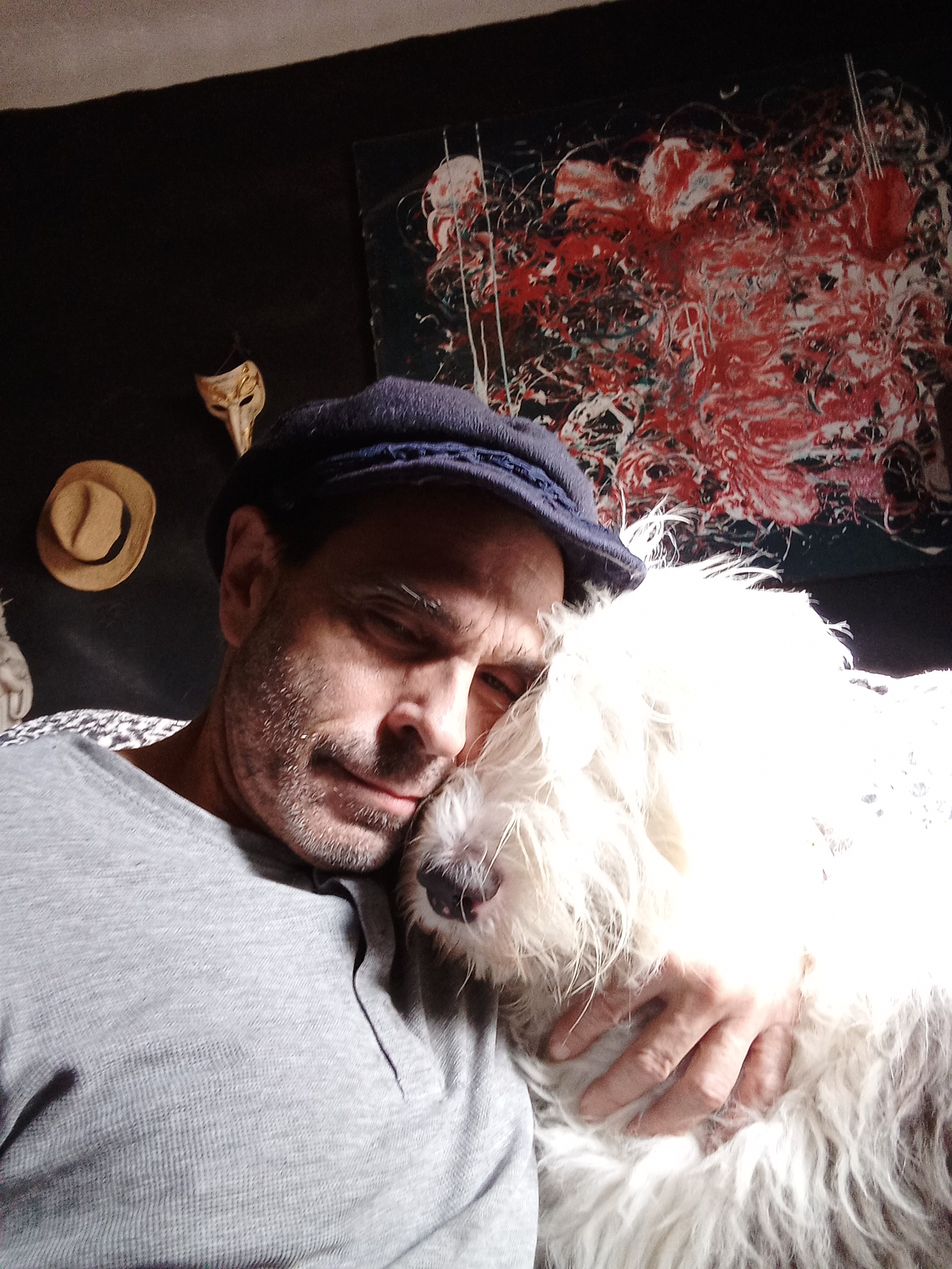 Fotos: Ray y su Gato Cornelio Helvetius y con su perra Gretel